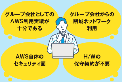 オンプレで利用しているシステムのサーバOS(Windows Server 2012 R2)のメーカーサポート終了および利用ミドルウェア(SQL Server2012)のサポート終了に伴うアップデート対応が必要/ オンプレで利用しているサーバのH/Wについてベンダー保守契約が満了に伴い、オンプレミスで再構築するかどうか検討が必要/ 利用サーバは本社サーバー室へ設置しているため、BCP対策の検討が必要